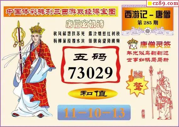 > 体彩P325年图迷285期 西游唐僧玄机图