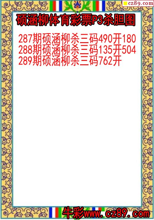 25年289期硕涵柳体育彩票P3杀胆图