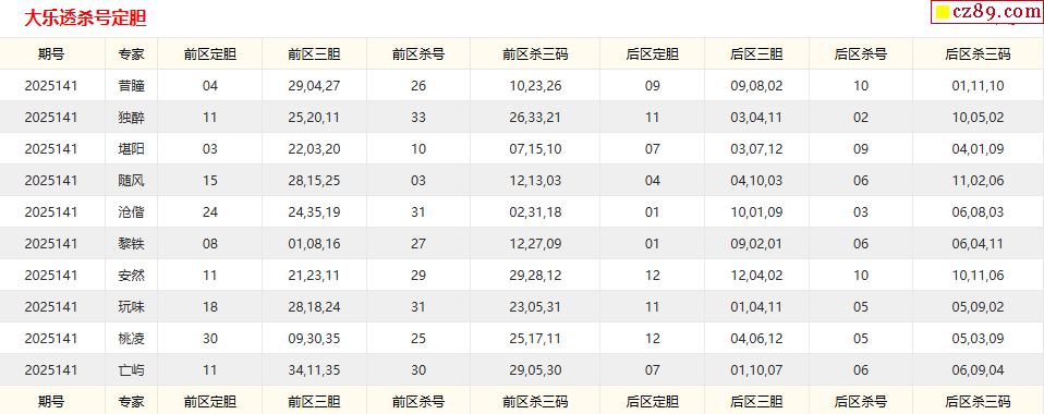 大乐透141期牛彩特邀专家前区后区杀号定胆图表